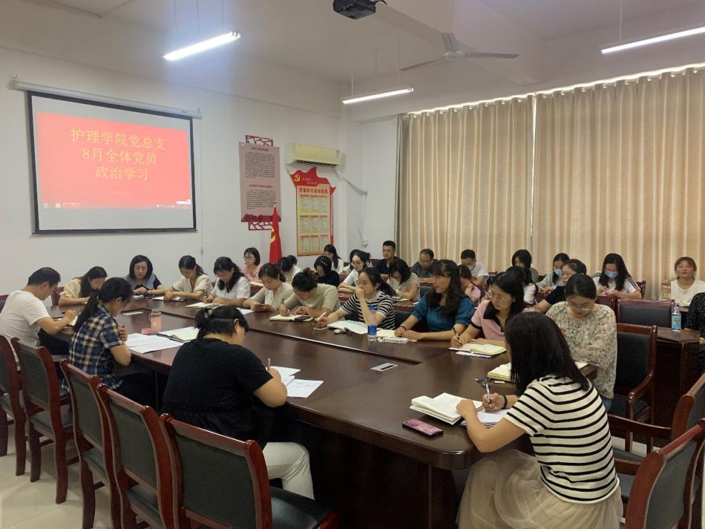 8月30日,护理学院党总支召开八月份全体党员政治学习会,集中学习《习近平:深化党和国家机构改革推进国家治理体系和治理能力现代化》、《习近平:加强基础研究 实现高水平科技自立自强》、《习近平:中国式现代化是强国建设、民族复兴的康庄大道》等文件材料。会议由护理学院党总支书记蔡季秋主持。
