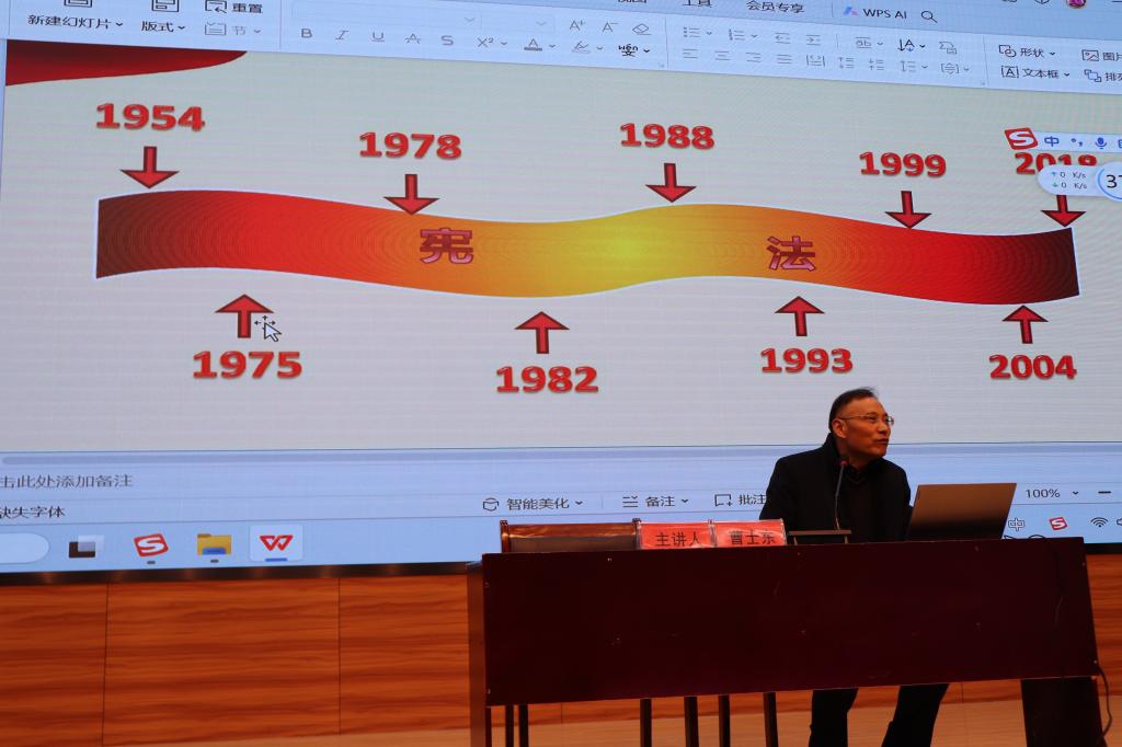讲座最后,曹士东向同学们提出要求并寄予殷切希望,希望同学们加强学习,积极参与社会实践,牢固树立法治意识,坚决捍卫法律尊严,共同推进法律知识学习的教育活动。并希望同学们以学习法律法规为契机,争做弘扬社会主义法治精神的先锋,要以践行社会主义核心价值观为根本,争做遵纪守法和尊重社会公德的自觉遵守者,起到模范带头作用。树立远大理想、走好人生道路,争做新时代德才兼备的优秀青年。(图:卢齐伟,文:王辛怡,初审:卢齐伟,复审:王旭,终审:蔡季秋)