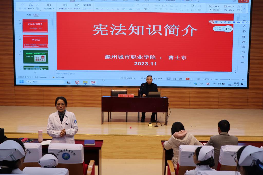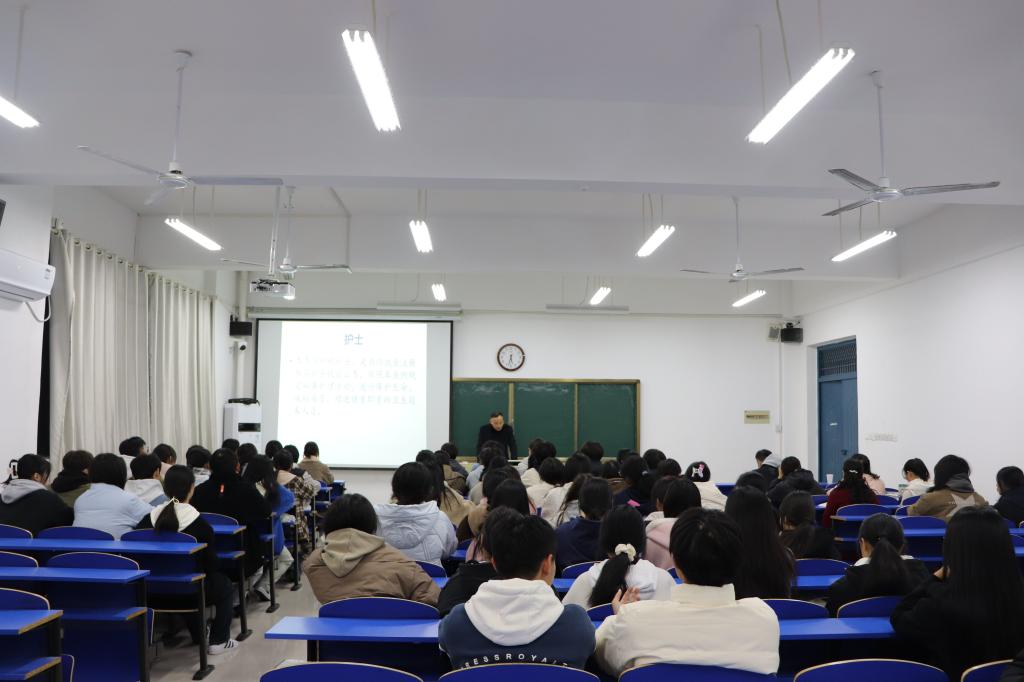 为深入推进依法治校,创建平安校园,提升学校“一站式”学生社区法治教育水平,提高学生法律意识和安全意识,11月13日-14日,校党委委员、副校长曹士东深入护理学院开展法治工作专题调研,并于学校第二学术报告厅开展法治专题讲座。护理学院教师第一党支部、教师第二党支部、学生党支部的党员代表及学生代表近400多人次参加。