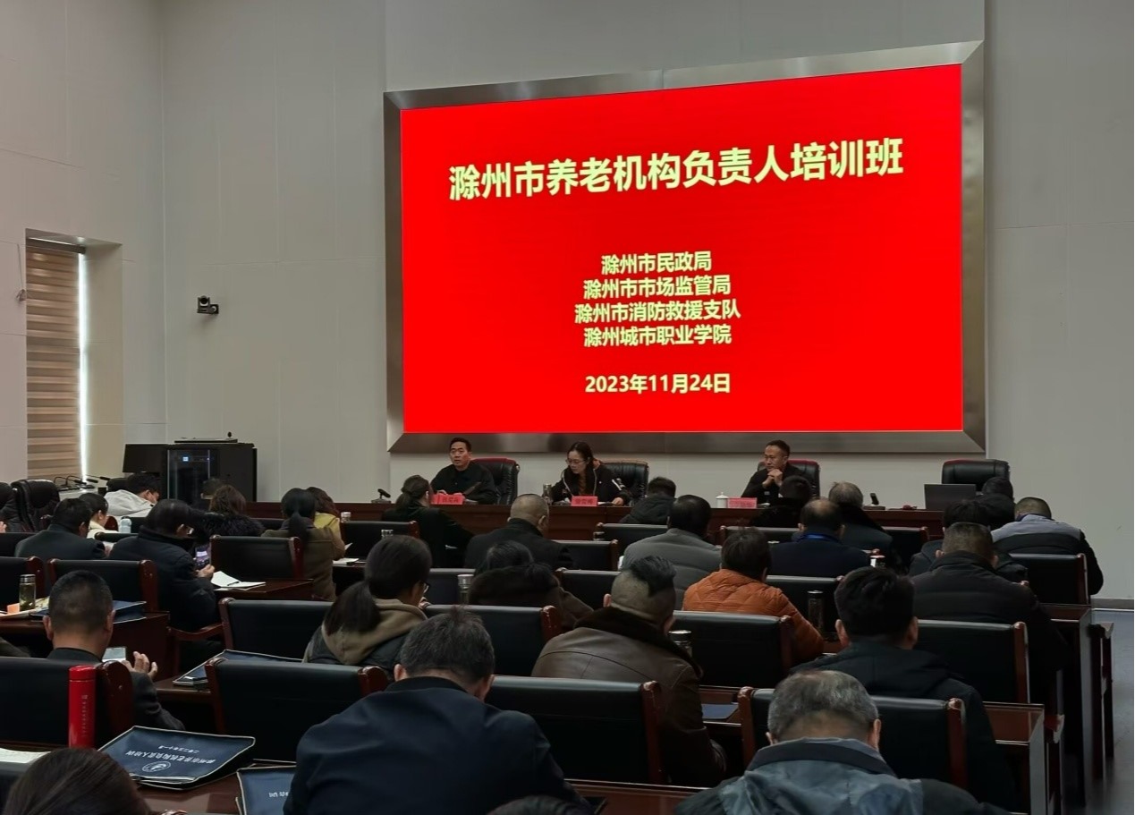 为深入贯彻落实党的二十大精神,加强全市养老服务人才队伍建设,提升养老服务的专业化和规范化水平,近期由我校承办的滁州市养老机构负责人培训班、社区养老服务人员培训班在市委党校顺利开班,来自全市公/民办养老机构、社区养老服务中心和社区老年食堂的350名机构负责人参加了本次培训。