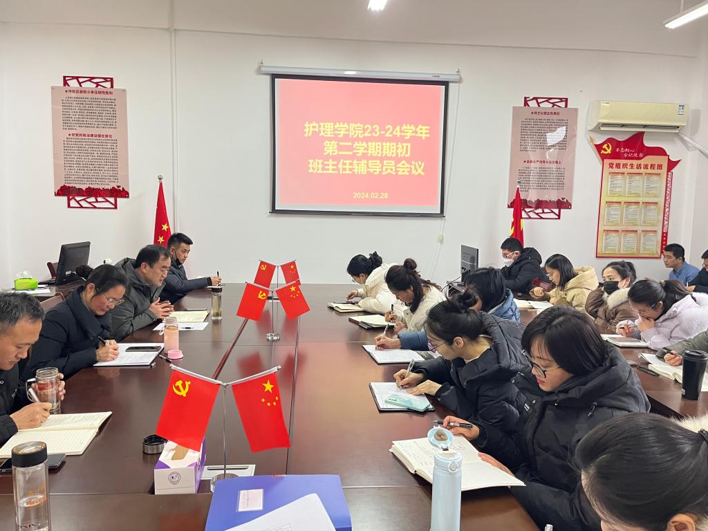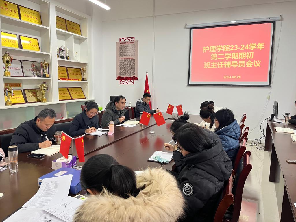 为做好新学期学生开学返校各项工作部署,根据学校学生管理工作专题会议的要求,2月29日下午护理学院在B3-106召开了新学期学管工作会议,本次会议由党总支书记蔡季秋主持,党总支副书记卢齐伟、副院长李勋华及全体辅导员、班主任参加会议。