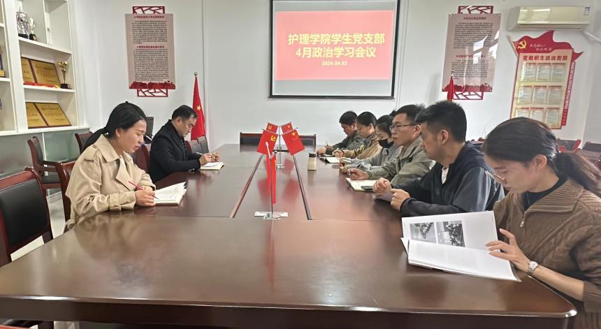 4月3日,护理学院学生党支部在B3-106会议室召开4月政治学习暨主题党日活动,会议由学生党支部书记卢齐伟主持,支部全体党员参加。