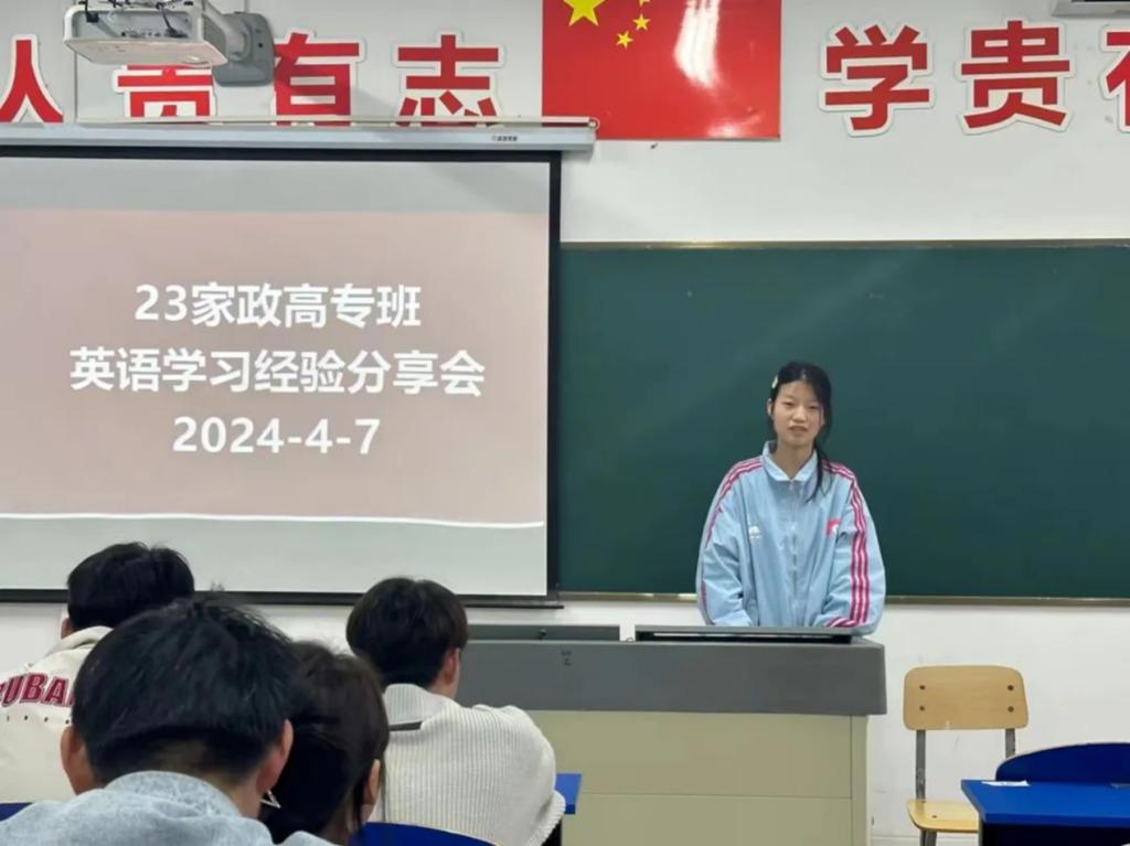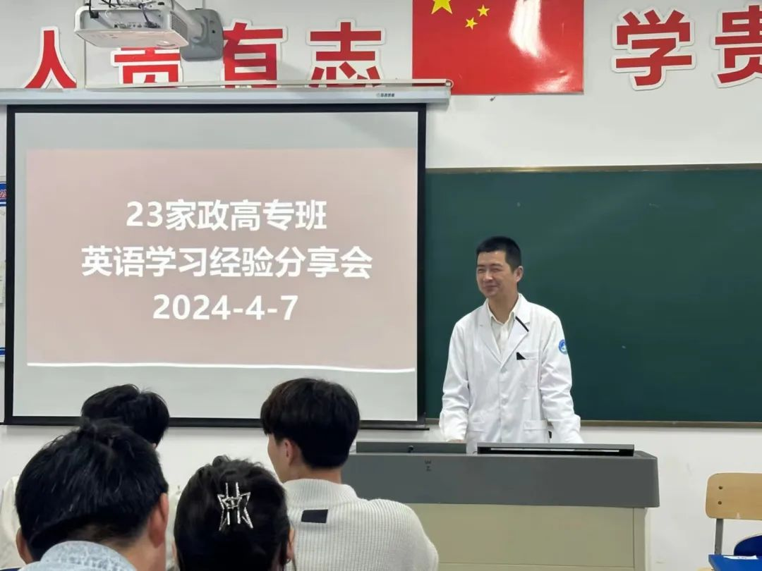 4⽉7⽇下午,2023级家政班成功举办了英语经验交流会。在此前的英语B级考试中,23家政班的通过率为80%,通过率在护理学院23级中名列前茅,为⿎励更多同学共同进步,特举办交流会。 活动伊始,辅导员朱云林分享了班级的成绩,并且指出这是各位考⽣在⼊校后短时间内迅速调整⾃⼰的⻆⾊,努⼒奋⽃的结果。家政班的同学⼀直谨记滁城院“勤学明理 ,慎思笃⾏”的学⻛。⾮学⽆以⼴才,⾮学⽆以明智。最后朱老师真诚地希望今年参加B级和四级的同学再接再厉,取得更大的辉煌!