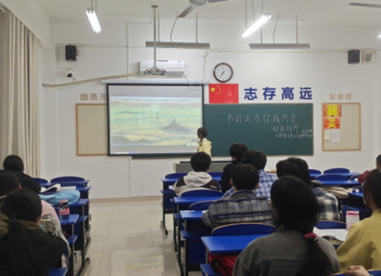 23护理高专10班张金凤同学带同学们了解《云边有个小卖部》这本书,伴随着优美的音乐,讲解者向同学们缓缓道来云边镇迷人的风景及主人公刘十三他们在云边镇发生的故事,同学们都听得如痴如醉。