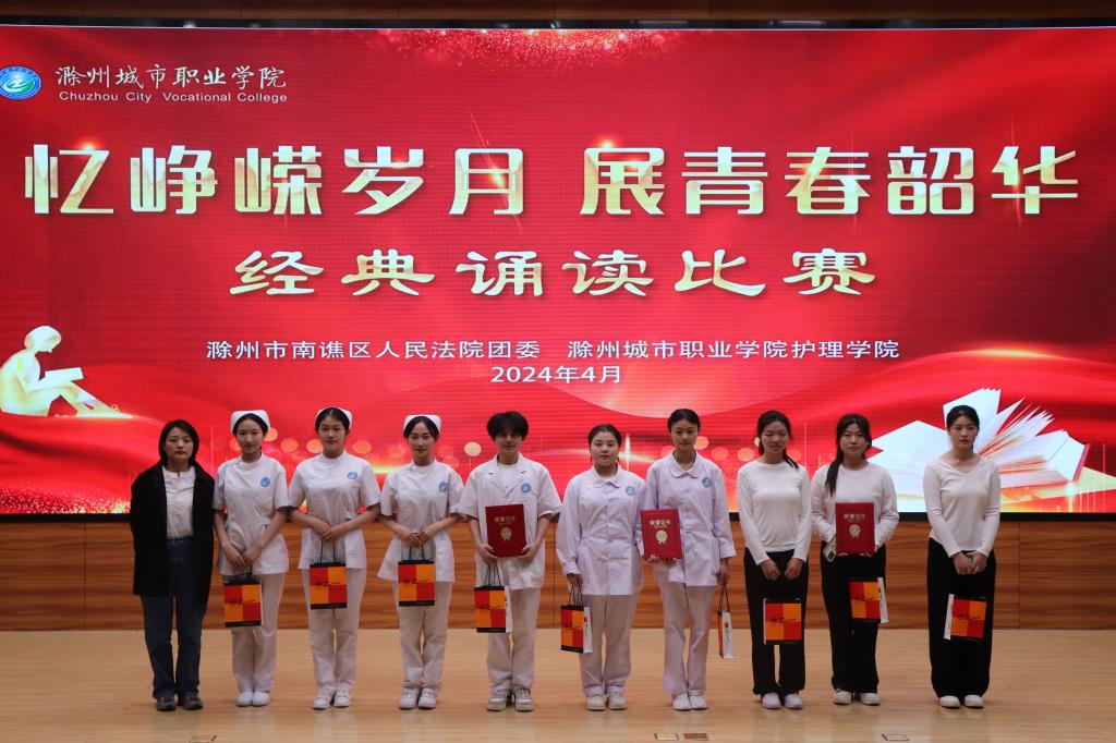 经典诵读比赛,不仅是一次文化的交流与传承,更是一次心灵的洗礼与升华。通过诵读经典,护理学院与南谯区法院的团员们共同感受到了中华优秀传统文化的魅力,进一步增强了文化自信和民族自豪感。护理学院团总支将以此作为契机,举办形式多样的活动,吸引更多的团员青年加入到阅读的行列中来,以书为伴、与书同行,共同书写文化繁荣的新篇章,同时,继续秉承“传承经典,筑梦未来”的理念,为培养更多具有高尚医德和精湛技艺的护理人才而不断努力。(图/文:王艳,初审:蔡淼,复审:卢齐伟,终审:蔡季秋)