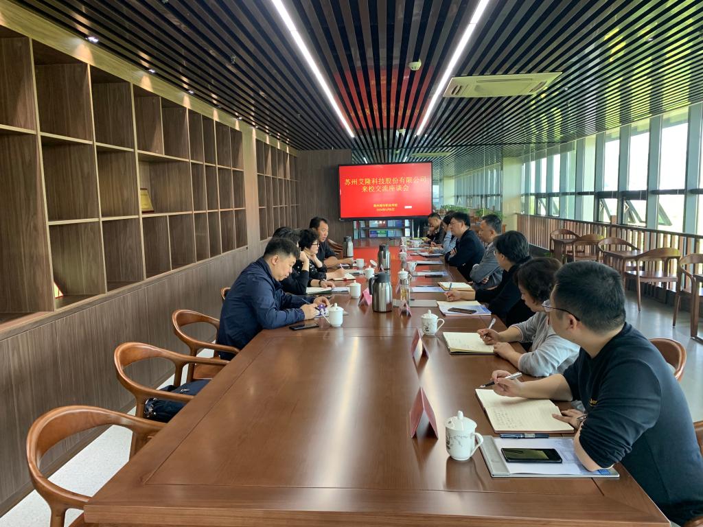 5月8日上午,苏州艾隆科技股份有限公司董事长张银花、筑医台(滁州)产业科技有限公司李宝山来校交流和洽谈,校党委书记王燕永,校党委委员、办公室主任、宣传统战部部长陈通出席座谈会,护理学院、医学院相关负责同志参加了座谈。