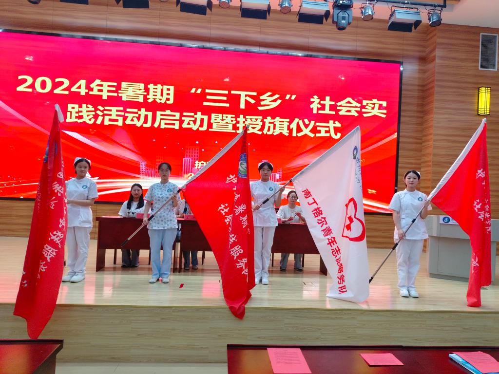 为进一步贯彻落实党的教育方针,引导学生深入基层、服务群众,展现新时代护理学子的风采。6月25日,护理学院在校第二学术报告厅举行2024年暑期“三下乡”社会实践活动启动暨授旗仪式。护理学院党总支副书记卢齐伟、团总支书记王艳、带队老师、学生代表近200人参加活动。
