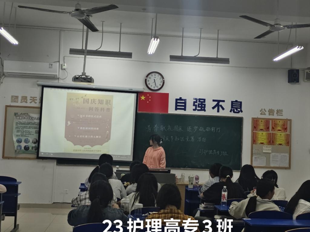 讨论环节,同学们围绕国庆节主题展开热烈讨论。从23护理高专13班的“国史小课堂”到23护理高专3班的“国史知识竞赛”再到23护理高专8班的“画出心中的祖国手抄报”。从新中国的成立到改革开放,到新时代的伟大成就,每一个历史节点都让大家感受到祖国发展的艰辛与辉煌,进一步增强了民族自豪感和文化自信。