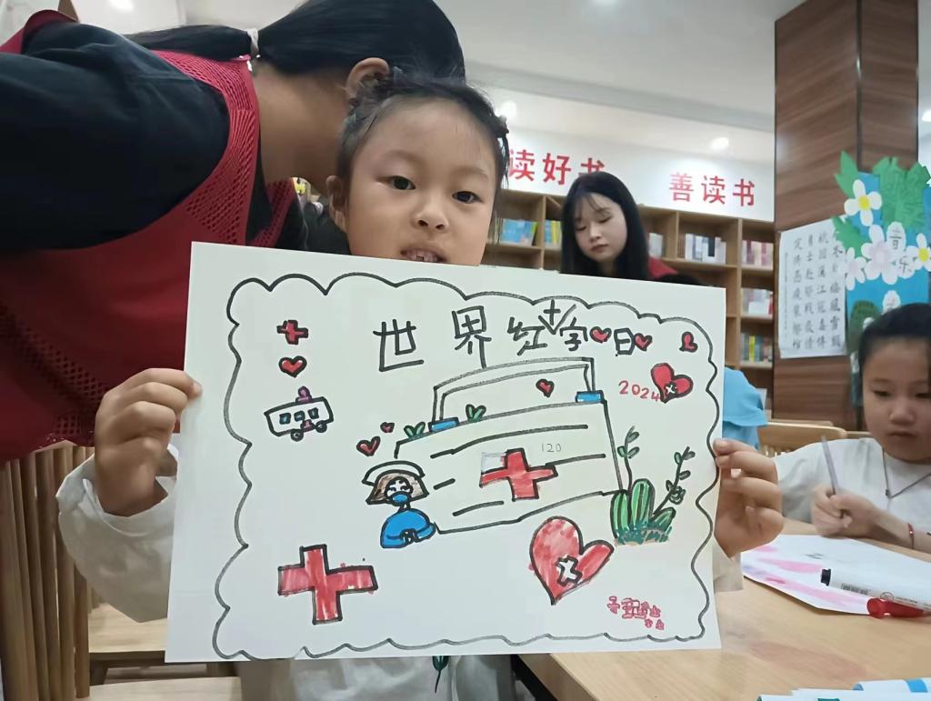 为了让应急救护知识更加深入人心,志愿者们还创新性地指导小朋友们制作了以“人道精神与应急救护”为主题的手抄报。他们耐心地引导小朋友们选择主题、搜集资料、设计版面,并亲手绘制了生动的插图和简洁明了的文字说明。在制作过程中,小朋友们不仅学到了应急救护知识,还锻炼了动手能力和创造力。