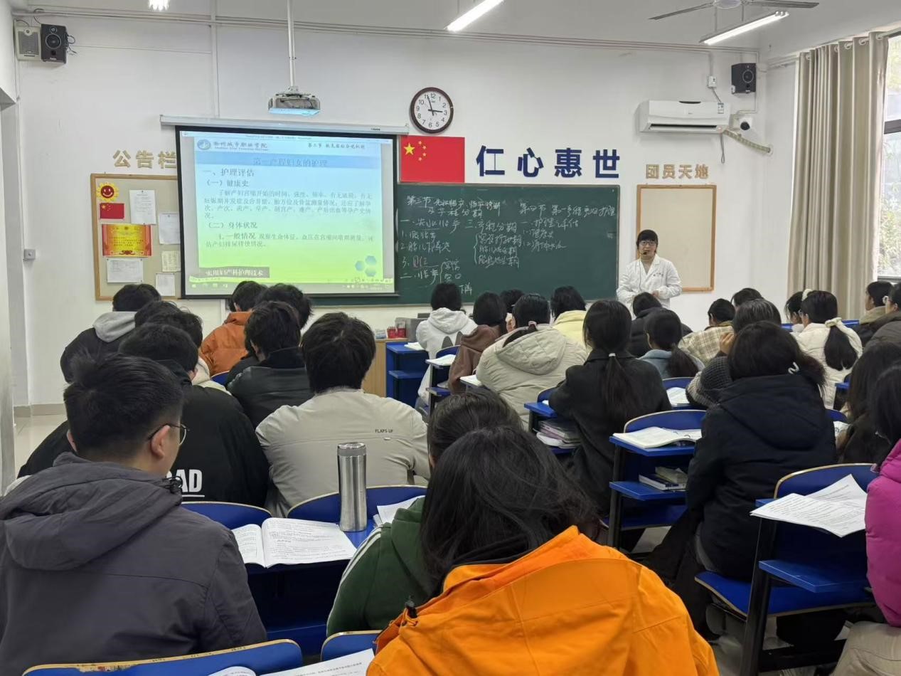 为了提升青年教师的教育教学水平,促进教师专业成长,护理学院护理系甘乐霞老师于2024年12月6日下午第5节课在B2-103为师生开展了主题为《分娩诊断》的公开课教学,23护理高专12班同学和护理系全体无课教师参加了本次活动。护理系黄萍主任主持本次公开课。课前甘乐霞老师做了充分的准备,课堂授课内容完整,教态从容、自信,体现了扎实的专业知识基础和丰富的临床实践经验。