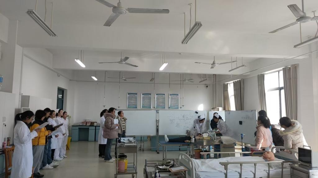 在备赛安徽省高等职业院校技能大赛护理技能赛项的关键时期,12月18日下午基护教研室全体教师在护理系主任黄萍的统筹安排下,成功举办一次仿真模拟备赛考核活动。此次考核旨在提升备赛学生专业技能,打磨操作细节,为护理技能大赛磋磨技巧,奋勇争先。