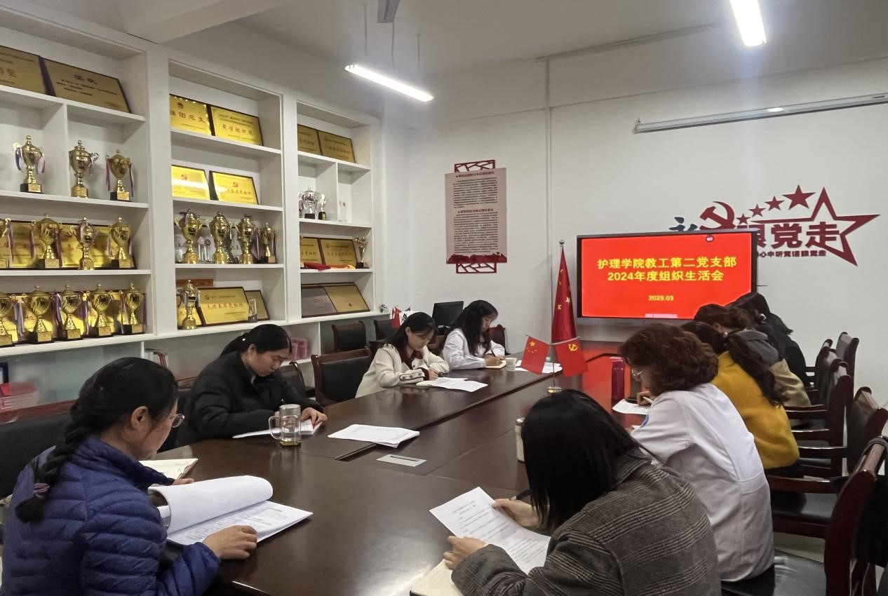 为进一步确保主题教育见成效,扎实推进全面从严治党,护理学院教工第二党支部于2025年3月12日召开了组织生活会和民主评议党员大会,会议由支部书记王婷主持,并邀请护理学院党支部书记蔡季秋同志对本次会议进行专业指导与严格监督。