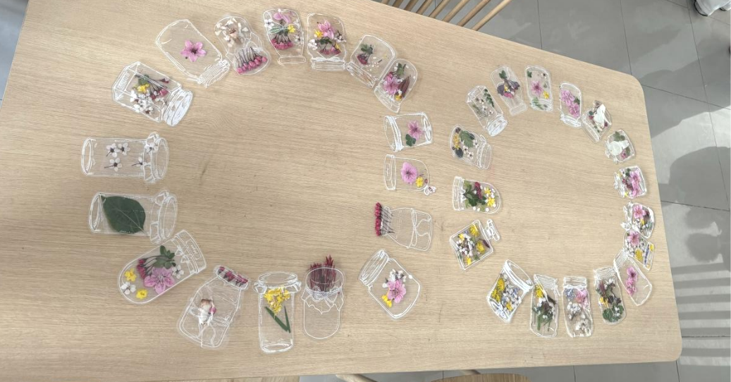 回到社区活动场地,便是创意无限的书签制作环节。同学们将采集的鲜花小心处理、压平,制作出独一无二的鲜花书签。有的同学将花瓣拼成爱心形状,表达对生活的热爱;有的同学用叶片勾勒出简约图案,展现清新自然之美。大家相互交流、互相学习,分享制作心得,现场氛围温馨融洽。