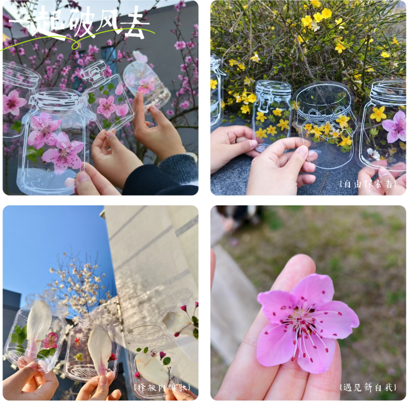以手作疗愈心灵,借春分传递关怀。活动现场,以“春分与情绪调节”为引,结合节气特点讲解春季心理调适技巧,引导学生关注自然节律与身心健康的关联。同学们漫步校园,在烂漫春花间穿梭,精心挑选心仪花朵。金黄的迎春花、粉嫩的桃花、洁白的梨花,每一朵都承载着春天的美好与希望。大家在采集过程中,亲近自然,感受春日生机,欢声笑语回荡在校园的每个角落。