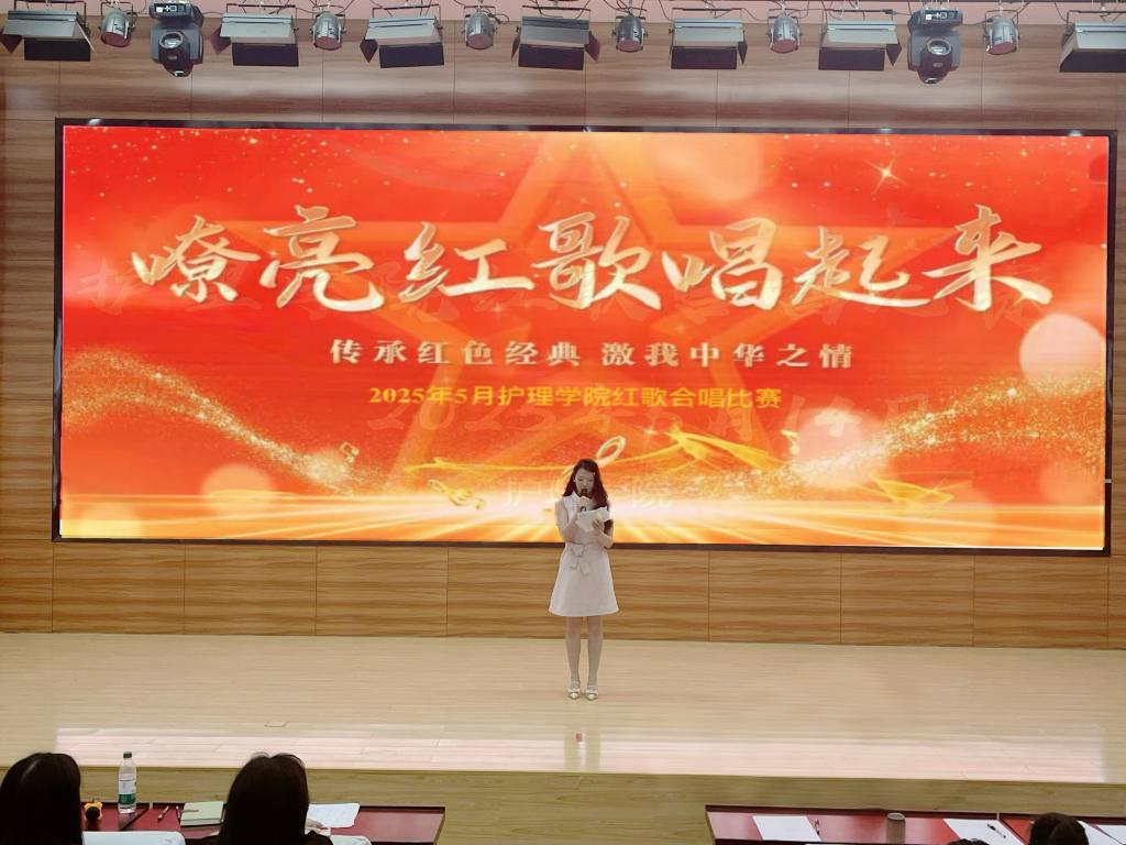 为厚植青年学生爱国情怀,传承红色基因,护理学院于5月14日下午在第二报告厅举办了红歌比赛。此次比赛以歌为媒,将红色文化与青春活力相融合,吸引了众多师生齐聚一堂,共同感受红色旋律的魅力。