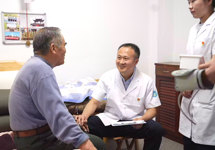 聆听完老兵们的故事,师生们迅速行动起来。大家打开血压计、血糖仪,有条不紊地为光荣院的老兵们提供全面细致的健康服务。大家耐心地为老人们测量血压、血糖,仔细询问他们的身体状况和日常用药情况,并根据每位老人的不同情况,给予个性化的健康指导。