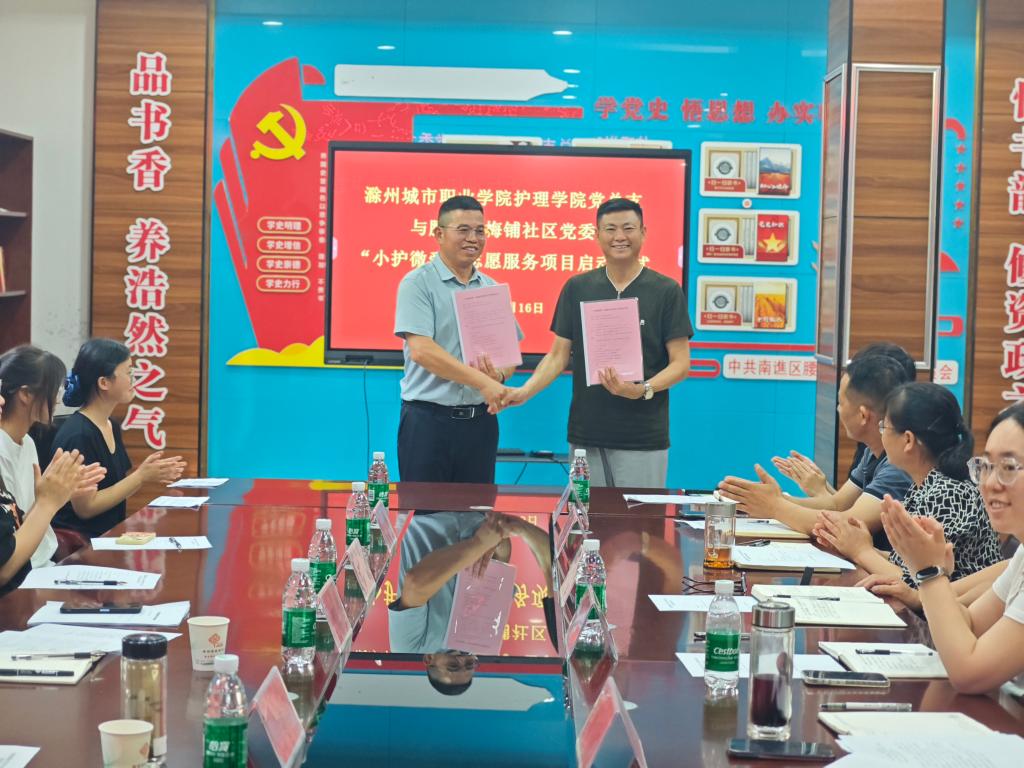 会上,“小护微爱” 共建项目正式启动。该项目聚焦社区特殊群体健康需求,计划开展上门护理、健康监测、心理陪伴等服务,构建 “专业护理 + 社区协同 + 志愿参与” 的服务模式。启动仪式上,双方明确项目分工与推进节点,护理学院组建 “小护微爱” 志愿服务队,社区梳理需求清单,标志着校社协同守护居民健康的新行动全面开启。