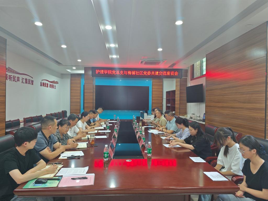 为深化党建引领下的校社协同,凝聚基层治理与健康服务融合发展合力,6 月 16 日下午护理学院党总支携手腰铺镇梅铺社区党委与在社区党员活动室,召开党建共建交流座谈会,共同探索校社协同发展新路径,激活基层治理与健康服务 “双引擎”。
