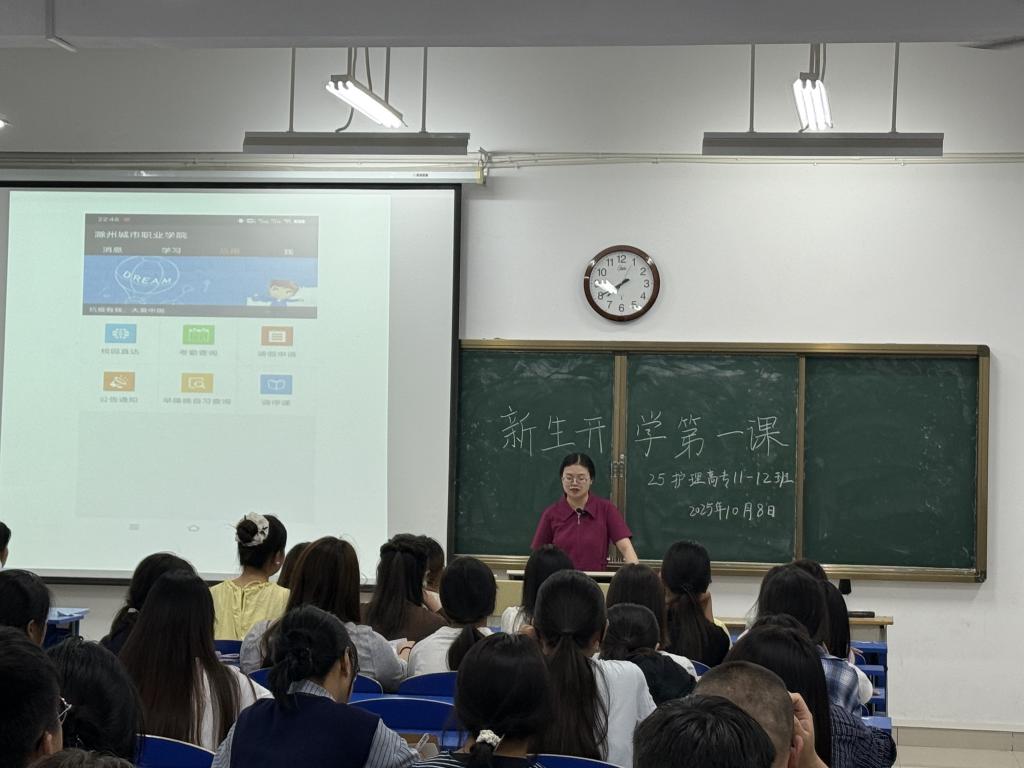 为帮助25级新生更快适应大学学习生活,10月8日晚,护理学院组织开展“开学第一课”主题班会。全体辅导员(班主任)深入班级教室,护理学院党总支书记席民、副书记王艳亲临现场,仔细查看班会组织情况,与新生进行交流,询问新生入学适应、专业认知等情况,对新生展现出的蓬勃朝气给予肯定,并鼓励大家在护理专业学习中锚定目标、夯实基础,以积极姿态开启大学时光。各班级辅导员围绕多项重点内容展开班会:一是强调假期准时安全返校的重要性,结合案例提醒学生增强安全意识;二是引导新生做好开学准备,从作息调整、学习用品整理等方面给出建议,以饱满的精神面貌迎接新学期;三是积极宣传动员校运动会与团委活动,讲解活动意义、项目设置及参与方式,激发新生集体荣誉感与青春活力;四是提醒新生重视教室与寝室的卫生及安全问题,从日常清洁规范、用电安全细则等方面提出要求,倡导共建整洁、安全的学习生活环境。