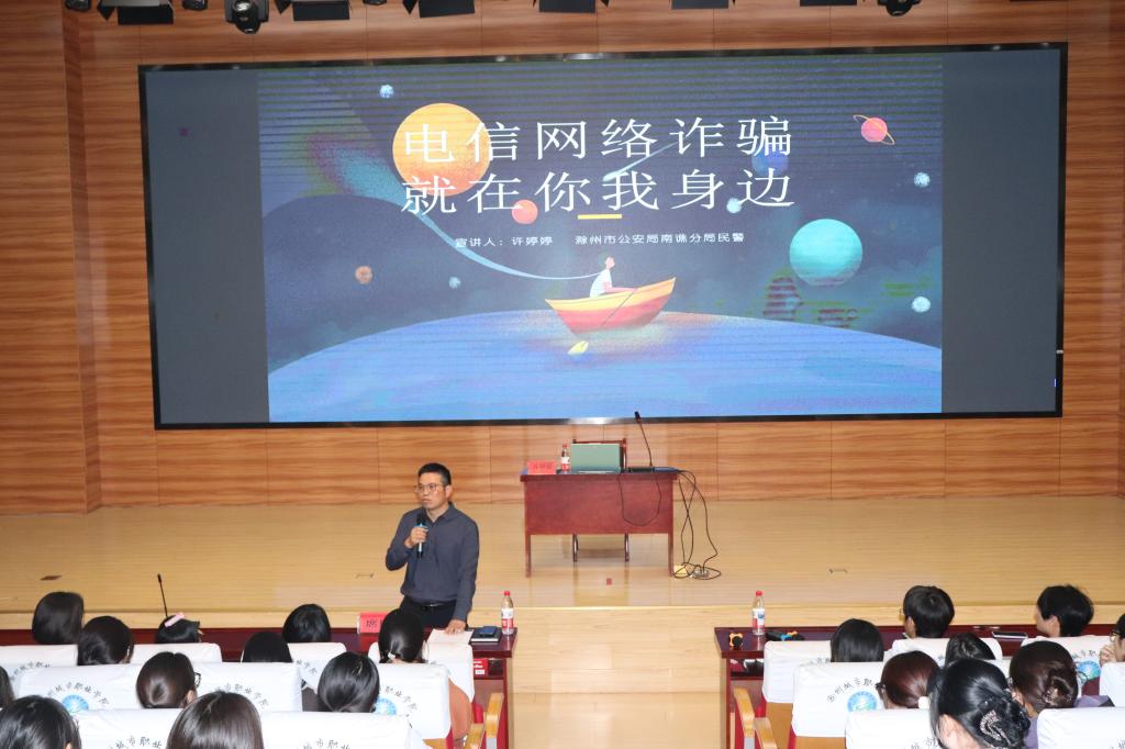 为进一步提升全体师生防范电信网络诈骗的意识与能力,有效遏制校园电信网络诈骗案件发生,保障师生财产安全及校园和谐稳定,10月16日下午,护理学院在校第二学术报告厅成功举办“电信网络诈骗就在你我身边”主题防诈宣传教育活动。本次活动特邀滁州市公安局南谯分局民警许婷婷主讲,学院党总支书记席民、25级新生辅导员及近200名学生代表参与活动。