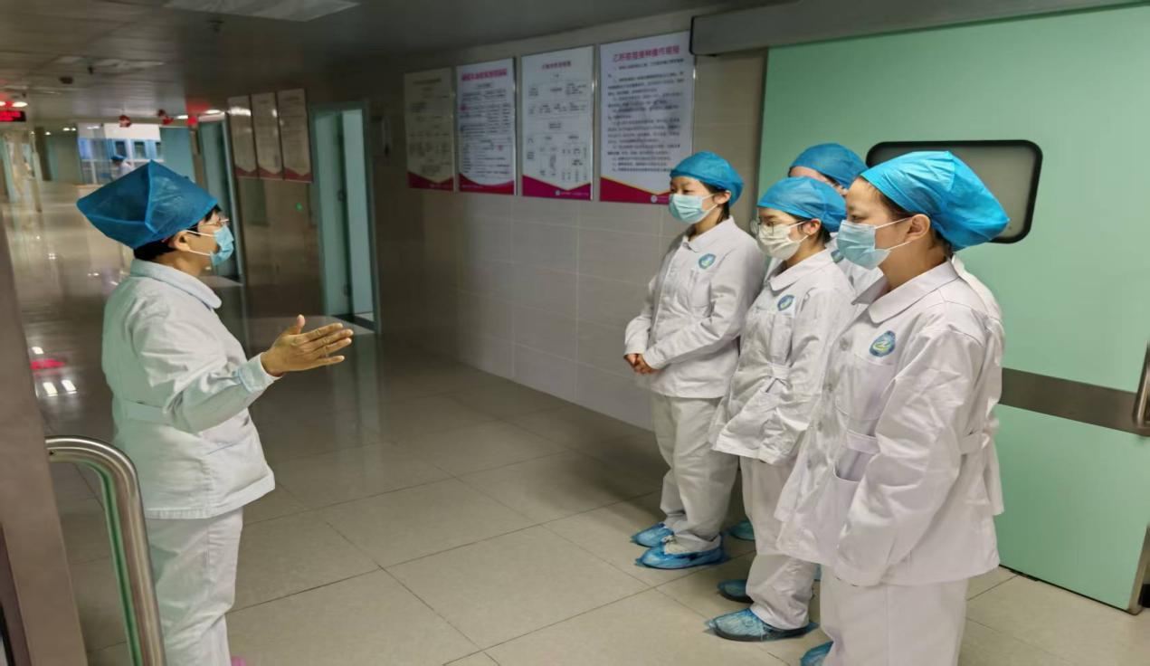 产房作为助产实践的核心场景,成为本次见习的重点环节。在符合无菌操作规范前提下,娄翠芹护士长结合医院特色的无痛分娩等服务模式,向学生系统讲解产程观察要点、胎心监测操作及应急处理流程。从四步触诊法的规范示范到产程进展的动态评估,从新生儿窒息复苏的模拟演示到产后出血的急救配合,每一个教学环节都紧扣临床实际需求,帮助学生建立“理论-观察-思考” 的临床思维链条。这种沉浸式学习让学生直观感受助产工作的专业性与责任感,深化了对“生命守护者”职业内涵的认知。