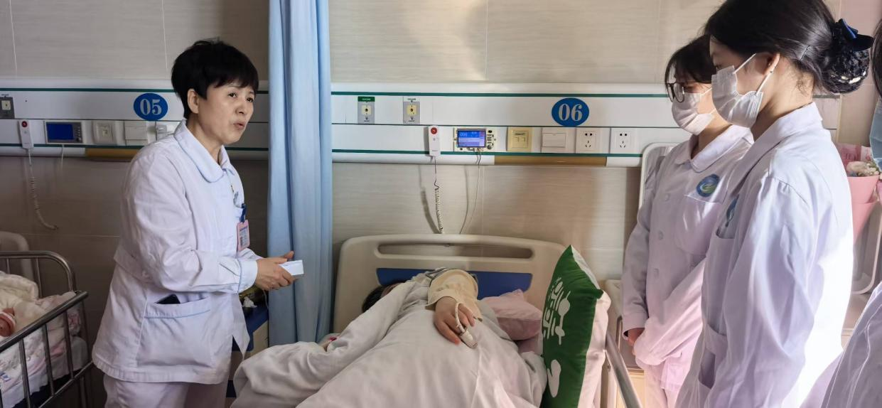 在产科病房,娄翠芹护士长以“病例复盘+现场示范”的方式,带领学生熟悉孕期护理流程:从孕产妇生命体征监测、高危因素识别,到产后康复指导、新生儿基础照护,将《助产学》课程中的理论知识转化为可感知的临床实践。学生通过观察老师与孕产妇的沟通技巧,帮助学生理解‘人文关怀’不是口号,而是体现在每一次耐心解答和细节照护中。