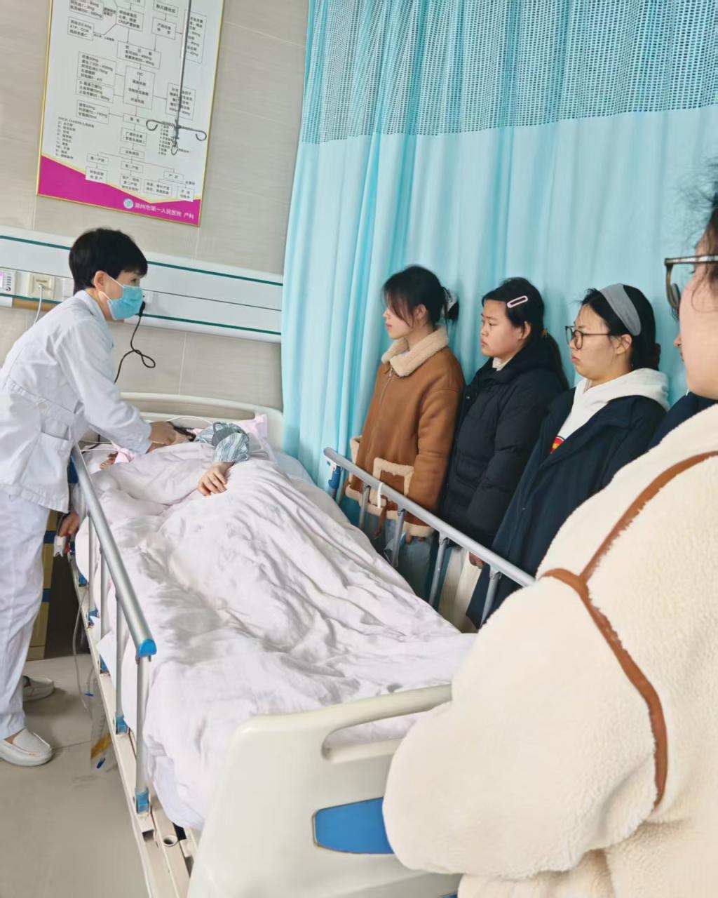 12.24日下午,我校24 级助产高专班8名学生前往滁州市第一人民医院(南区)产科开展见习活动。作为我校产业教授,同时担任产科护士长的娄翠芹全程统筹带教工作,带领学生深入产科病房,实现专业技能与职业素养的同步提升。