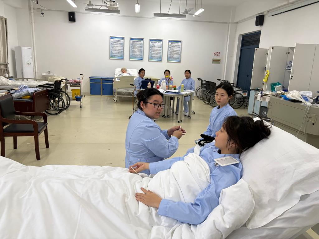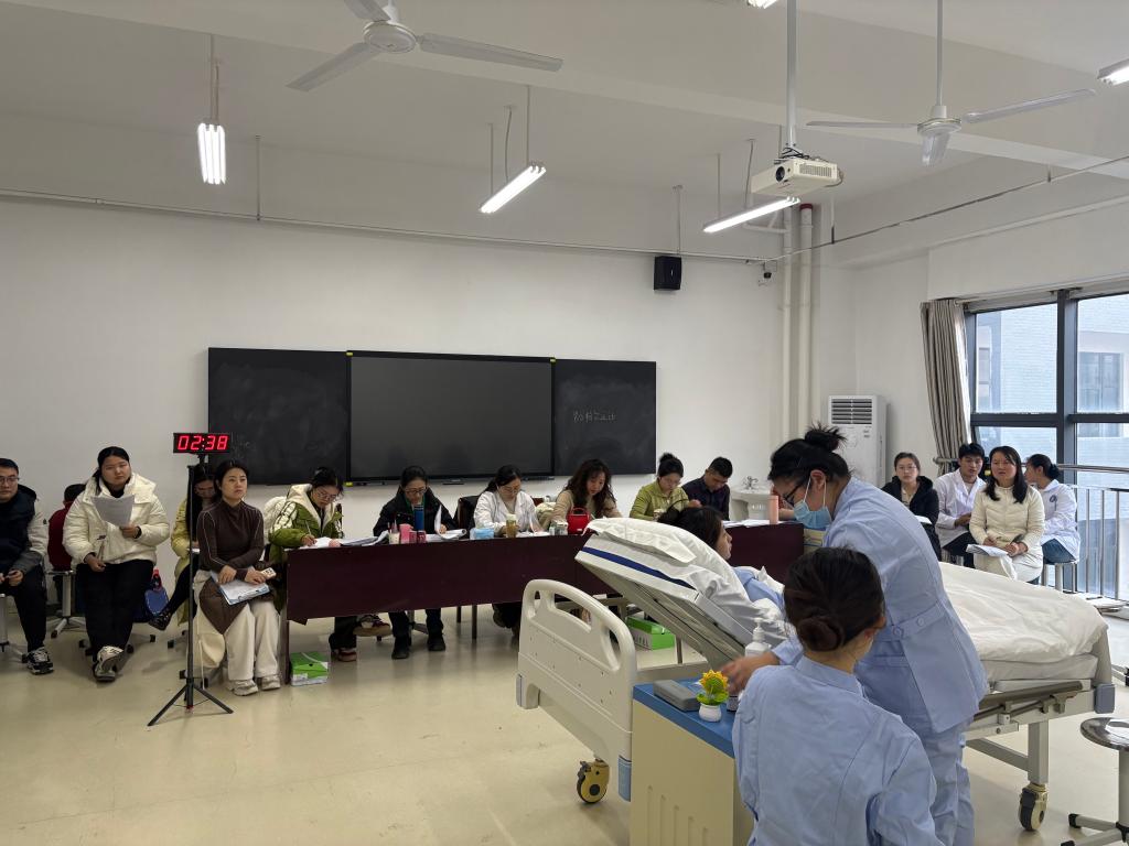“省赛不仅是技能的比拼,更是职业素养的展示。” 系主任王婷在训练间隙的复盘会上强调,此次备赛特意模拟了临床真实场景,就是要让学生在训练中养成 “把每一次操作都当作临床实战” 的职业习惯。为此,指导教师团队不仅细化了每日训练清单,还增设了 “突发状况模拟” 环节:比如在操作中临时加入 “患者提问”“情绪紧张” 等变量,锻炼学生的临场应变能力。