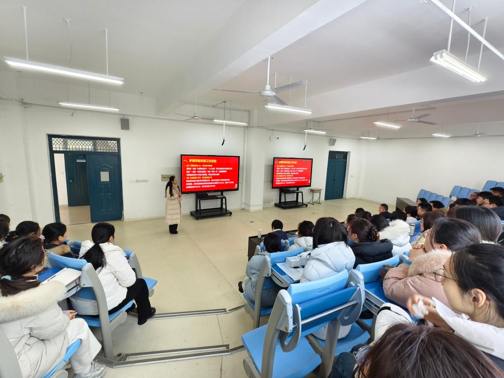 会议伊始,金虹院长作护理学院年度工作总结报告。报告从教学改革、师资建设、学生管理、科研创新、社会服务等多个维度,全面回顾了2025年学院各项工作取得的丰硕成果,客观分析了工作中存在的不足与挑战,并围绕2026年学院发展目标,对教学质量提升、专业内涵建设、校企合作深化、学生就业创业等重点工作进行了详细部署。她强调,全体教职工要坚守育人初心,深耕护理专业领域,以更加饱满的热情、更加务实的作风,推动学院各项工作再上新台阶。