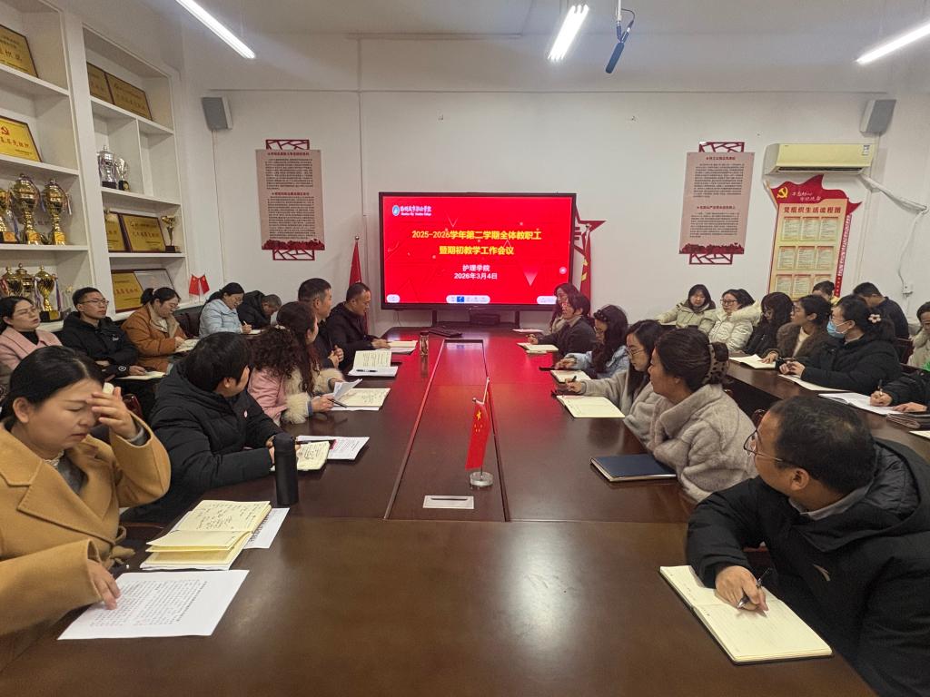 为深入贯彻落实学校新学期工作部署,全面统筹推进学院各项事业高质量发展,3月4日,护理学院召开2025-2026学年第二学期全体教职工暨期初教学工作会议。学院党总支书记席民、院长金虹及全体教职工参加会议,会议全面部署新学期各项工作,统一思想、凝聚共识,为学院高质量发展奠定坚实基础。