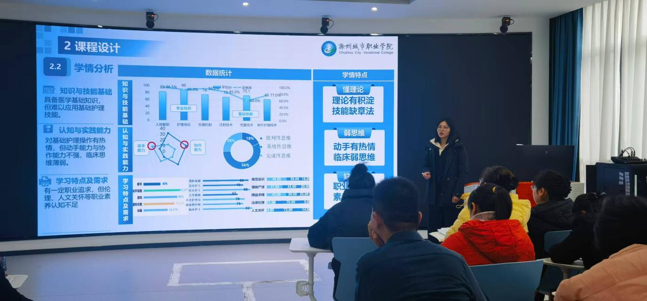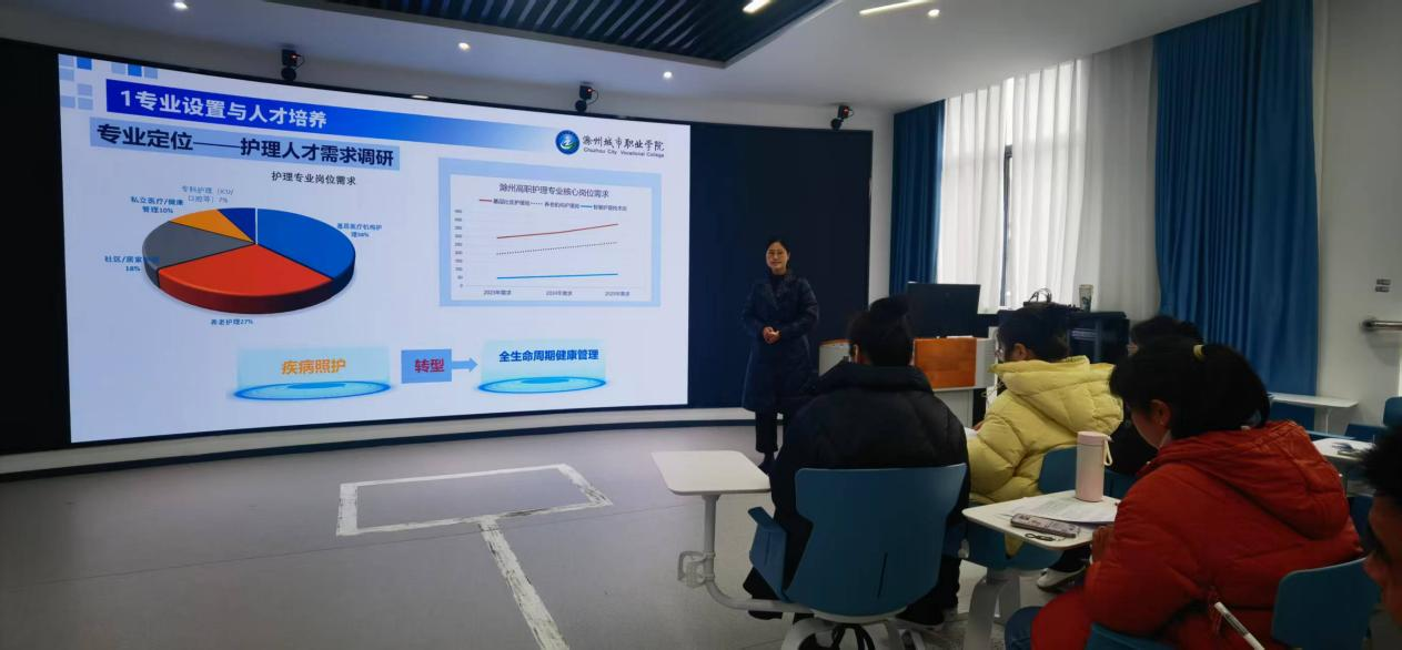 为进一步深化教育教学改革,提升专业建设内涵,全面提高人才培养质量,3月18日下午,滁州城市职业学院护理学院成功举办了专业剖析与说课第一轮演练活动。本次活动旨在通过系统梳理与深入研讨,为迎接新一轮教学评估及提升日常教学质量奠定坚实基础。