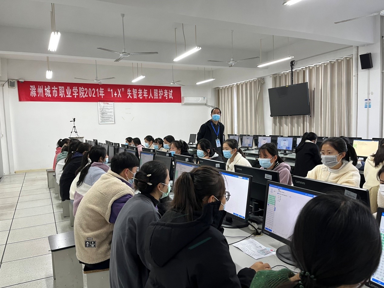 11月13日, 教育部1+X失智老年人照护职业技能等级证书考试在我院计算机房进行,护理系2020级护理和老年保健与管理专业240名学生参加了本次考试。