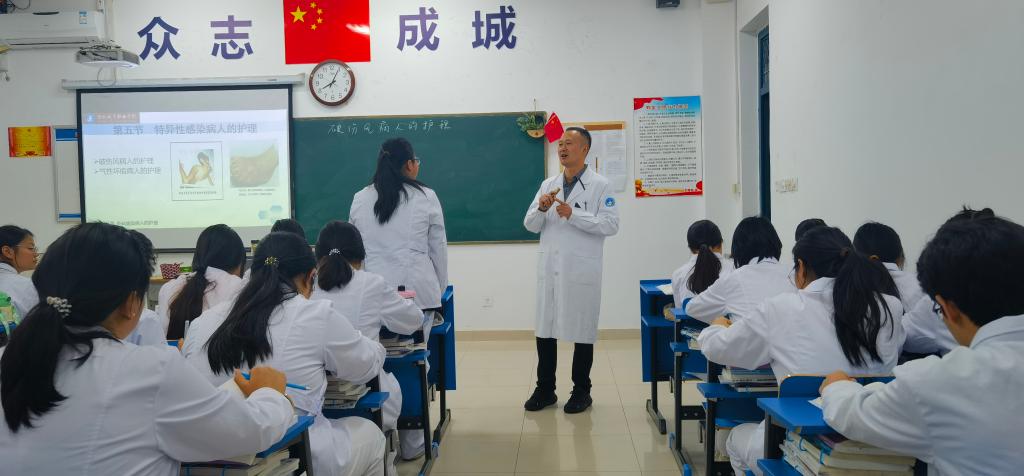 2024年11月15日上午,在B2-309教室,护理学院副院长李勋华为师生开展了主题为《破伤风病人的护理》的示范公开课教学,23护理高专16班同学和学院全体无课教师参加了本次活动。