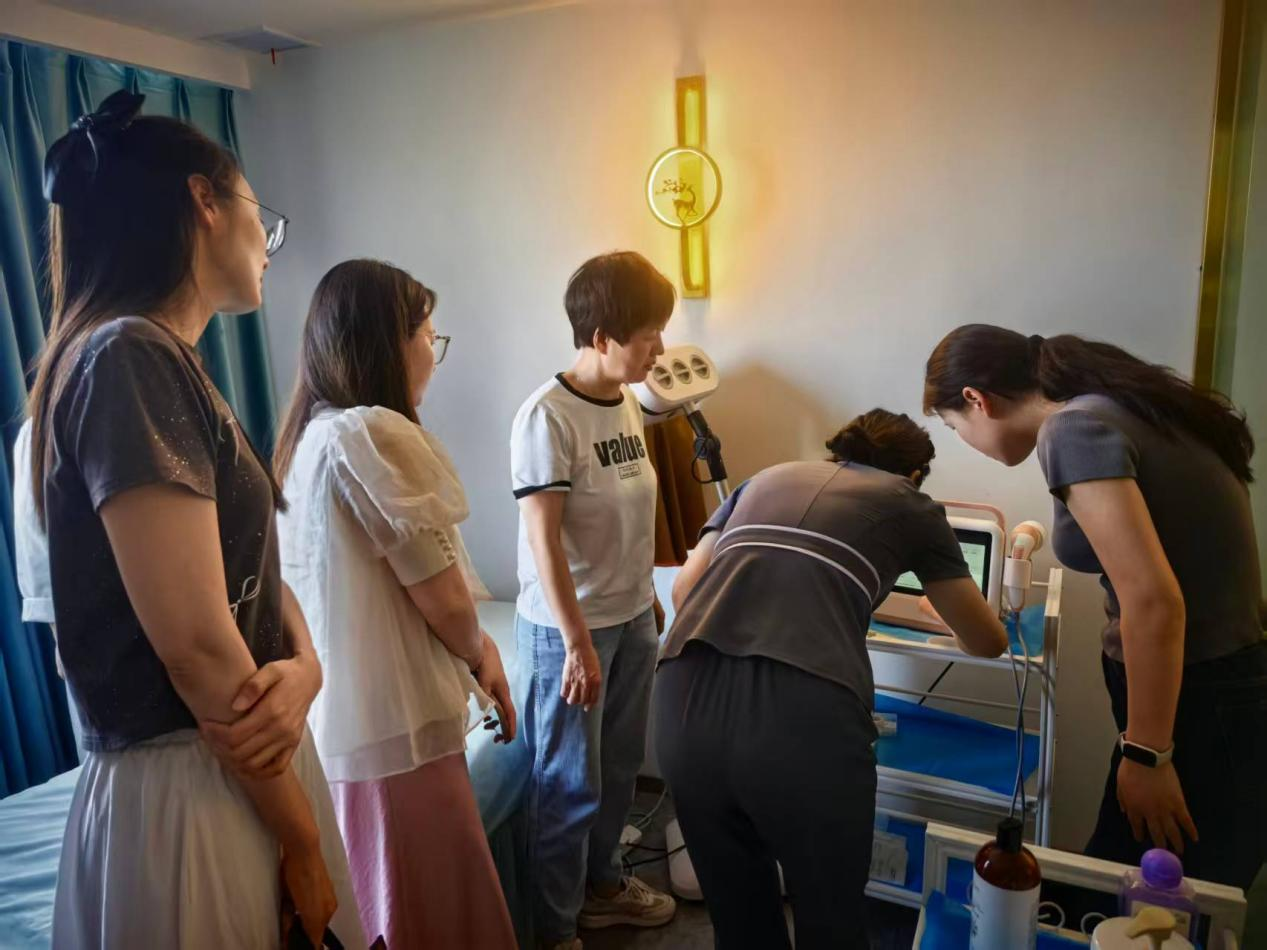 随后,师生们深入产后康复中心进行学习交流,娄翠芹护士长带领即将参加“2025一带一路暨金砖国家技能发展与技术创新大赛--第二届产后恢复职业技能赛项”的师生团队与中心专业产康师进行技术交流,以学习前沿技术,提升实践能力。