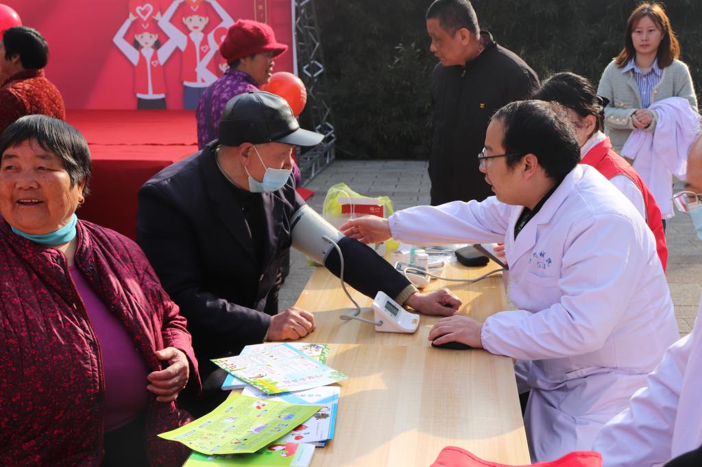 本次活动共有14名党员教师参加。活动中,我院党员教师们充分发挥自己的专业优势,为社区群众普及健康知识,倡导健康生活方式。基护教研室和妇儿教研室的老师们分别为社区群众开展了心肺复苏和婴儿抚触知识讲解和演练,并手把手教学。内外科教研室老师们免费为社区群众测量血压、血糖,根据不同情况给予合理饮食及用药建议,耐心回答居民们提出的问题,现场气氛热烈。