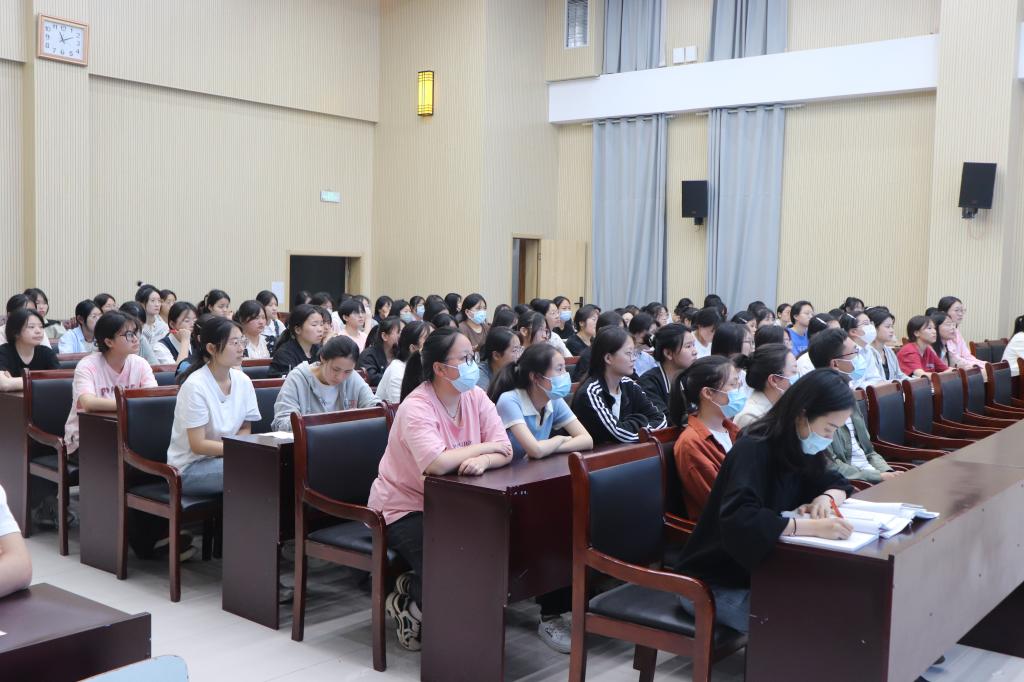 为深入学习贯彻落实党的二十大精神,确保党的二十大精神入脑入心、落地落实,5月17日晚,滁州学院体育学院党委书记,滁州市法学会副会长黄永青教授应邀为护理学院师生作《开辟马克思主义中国化时代化新境界》专题讲座。讲座由院党总支书记蔡季秋主持,院党总支副书记卢齐伟、学管老师、辅导员及学生代表参加此次讲座。