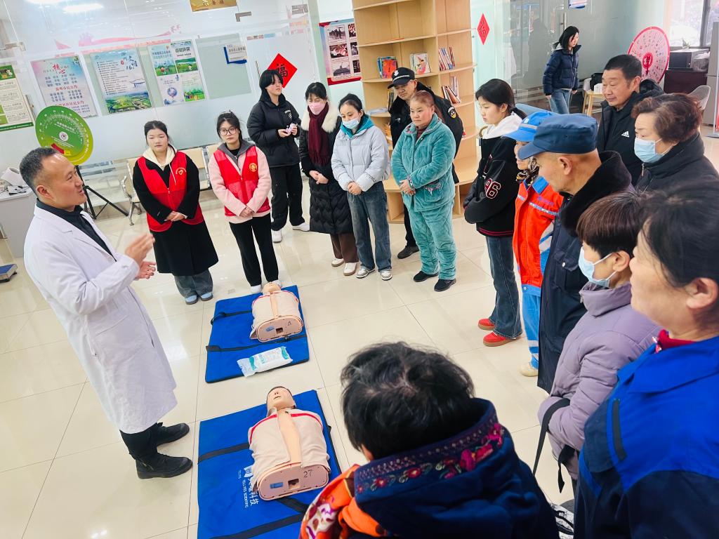为增强居民应对突发健康事件的能力,护理学院副院长、红十字培训师资李勋华现场演示心肺复苏术,并邀请居民参与实操练习。通过“理论+实践”的方式,居民们掌握了急救流程的关键步骤,进一步提升了社区应急救护水平。