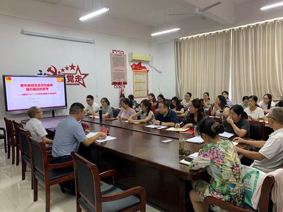 黄永青以 “毛泽东同志1927-1935年应对挫折的方式” 为切入点,带领护理学院全体教师党员回望那段血与火的革命岁月,从伟人 “敢教日月换新天” 的坚韧中,探寻青年教师党员党性修养的提升路径。授课过程中,黄永青书记的讲解既有理论高度,又贴合教师工作实际,引发了在场青年教师党员的强烈共鸣。大家认真聆听、详细记录,并围绕“如何平衡教学科研与党性实践”“怎样将党性修养融入护理专业人才培养”等话题展开热烈交流。