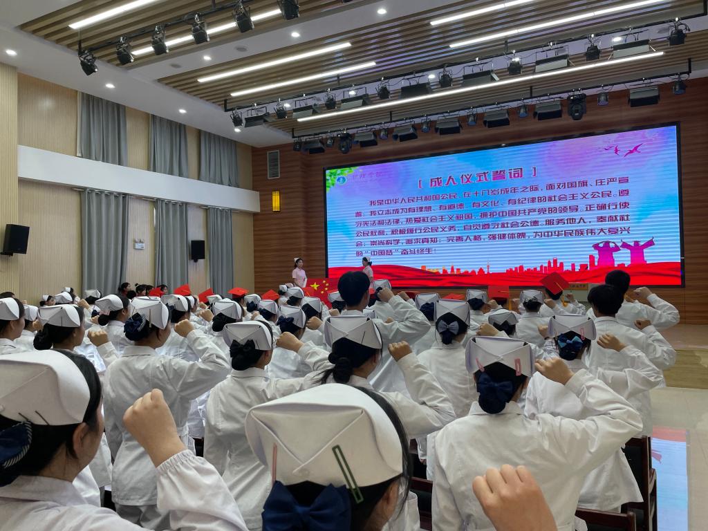 十八岁,是人生的春天,是生命航线上的又一个新起点。十八岁,象征着青春,标志着成熟,更意味着一份责任与担当。为进一步学习贯彻落实党的二十大精神,培养青年学子的感恩情怀和责任担当,使其成为有理想信念、有家国情怀的合格公民,在五四青年节到来之际,4月26日下午,护理学院在第二报告厅举行十八岁成人仪式活动。学院领导,班主任和成年学生代表近150人参加活动。仪式由团总支书记王艳主持。