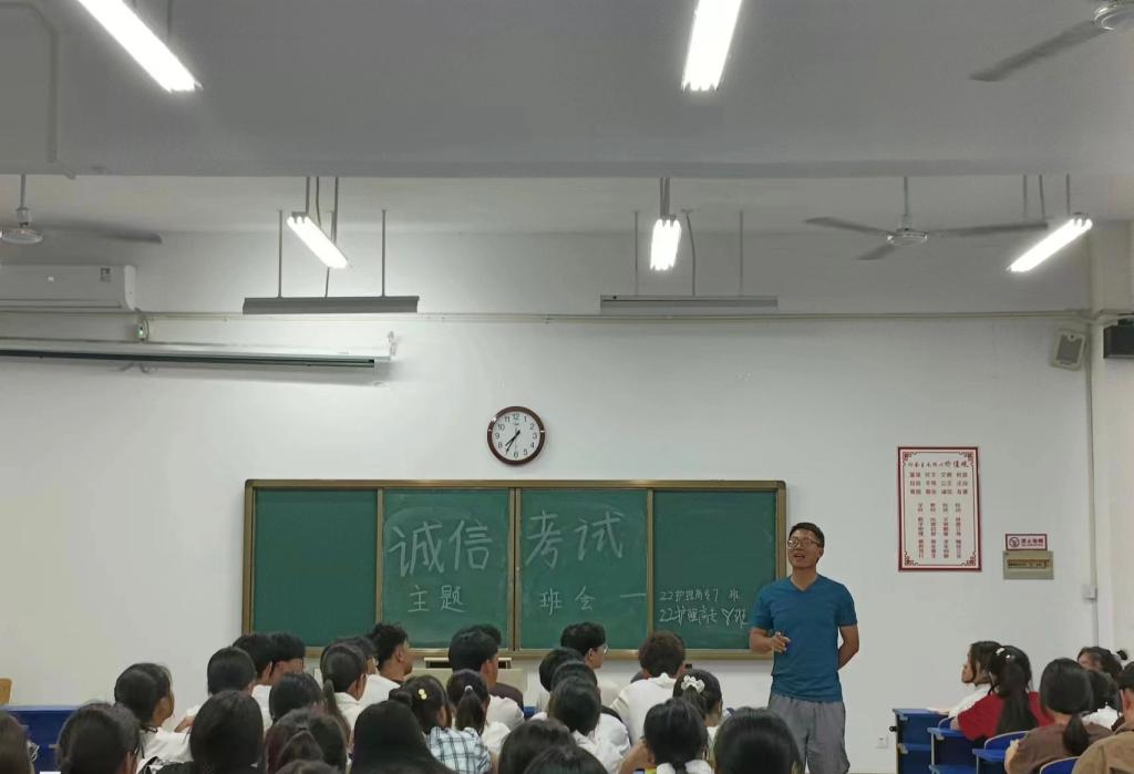 为加强学风建设,抵制作弊等不良风气,营造好学、乐学、笃学的学习氛围,维护考试的公正和严肃性,6月14日晚,护理学院各班积极开展诚信考试主题班会。
