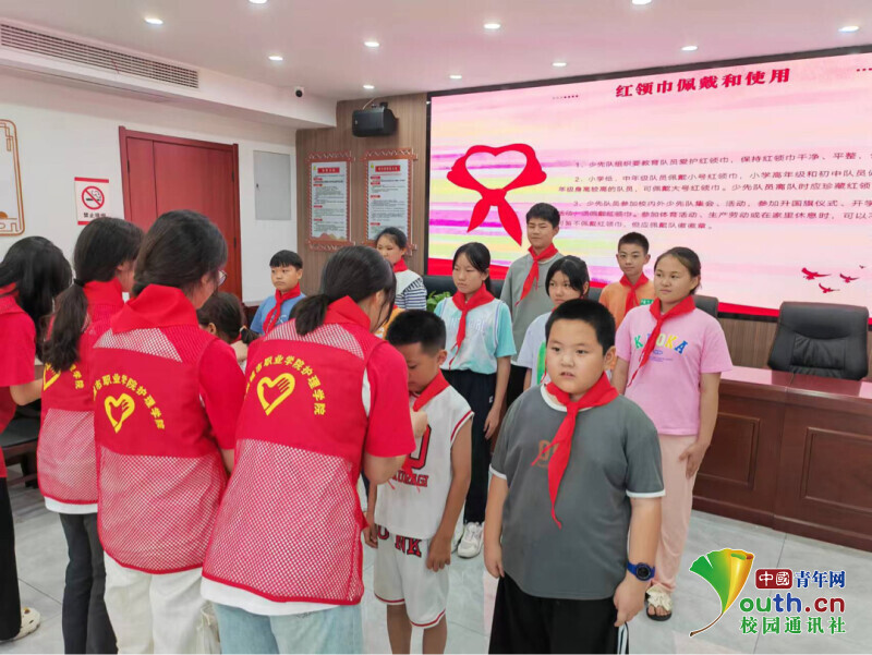 为深入学习宣传贯彻习近平新时代中国特色社会主义思想和党的二十大精神,进一步引导少年儿童传承红色基因,赓续红色血脉,2023年7月1日至7月15日滁州城市职业学院护理学院南丁格尔志愿服务队来到了滁州市扬子社区开展少先队实践营专项活动。