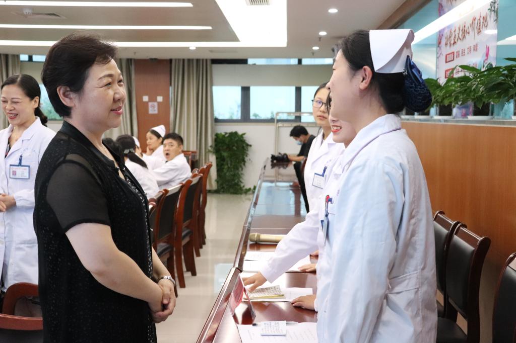 一院护理部、科教科、检验科等相关科室负责人在座谈交流时介绍了学生实习基本情况,对学生两个月来的实习工作进行了充分肯定,感谢我校在实习工作上给予的大力支持,希望今后在共同育人方面进一步加强沟通交流。