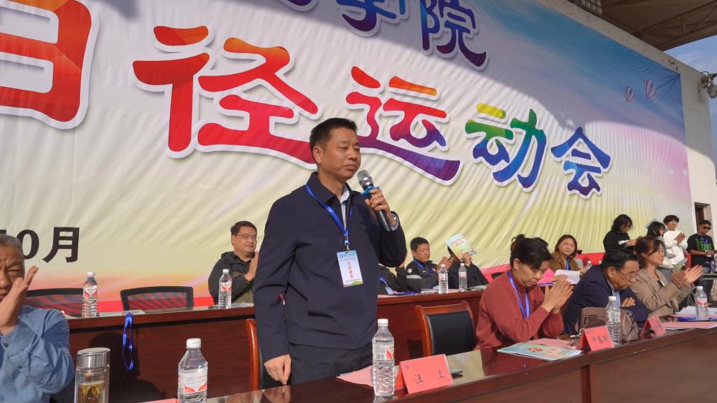 入场式后,开幕式在雄壮的国歌声中拉开帷幕。施向阳在开幕辞中代表学校全体师生,对为本次运动会筹备工作付出辛勤劳动的师生表示衷心的感谢,向大会全体工作人员、裁判员、运动员们致以诚挚的敬意。他指出,体育承载着国家强盛、民族振兴的梦想。学校一直重视体育工作,充分发挥其在深化改革、全面推进学生素质中的作用。近两年,我校荣获省级以上奖项近50项,其中,国家级奖项近20项。希望广大师生高度重视体育锻炼,以运动会为平台展示个人才华,磨练自我意志,培养团队合作精神与集体荣誉感。