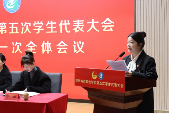 会议期间,葛锐同学作了题为《勇担重任,服务大局,为建设一流技能型高水平大学贡献青春力量》的工作报告,报告全面回顾和系统总结了一年来学生会工作取得的主要成绩和基本经验,明确提出了未来发展的总体思路和主要任务。此外,大会选举产生了滁州城市职业学院第五届学生会主席团以及第五届学生委员会。