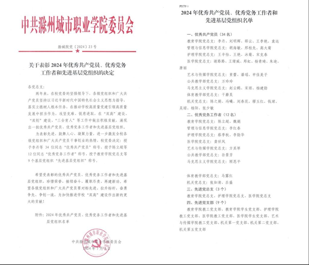 “七一”期间,校党委对推进学校“双高”建设、“双创”建设、“三全育人”等工作中涌现出的一批先进集体和优秀个人进行表彰,号召广大党员干部群众要以先进为标杆、以榜样为旗帜,恪尽职守干事业、心怀责任勇担当、创先争优有作为,使每名党员学有目标、评有标尺、行有标杆、赶有方向,以榜样之光点燃奋斗之火照亮前行之路。