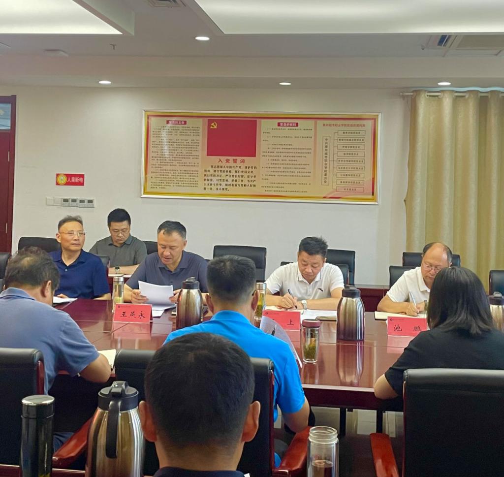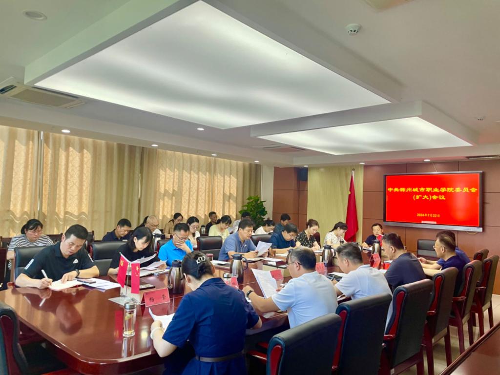7月22日上午,中共滁州城市职业学院委员会(扩大)会议在图文中心第四会议室召开,传达学习党的二十届三中全会精神,安排部署我校学习宣传贯彻工作,党委书记王燕永主持会议并讲话,校党委班子成员、副县级领导干部及各部门负责同志参加会议。
