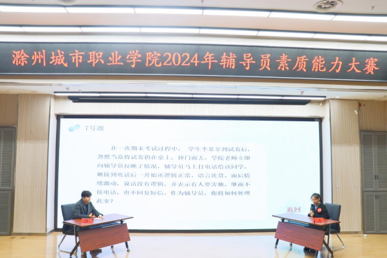 为深入学习贯彻习近平新时代中国特色社会主义思想和党的二十大、二十届二中、三中全会精神,落实《普通高等学校辅导员队伍建设规定》要求,不断提升高校辅导员的理论水平、职业能力和专业素养,我校于1月15日至16日在图文中心报告厅举办了2024年辅导员素质能力大赛,学校党委副书记牛春雨等莅临现场观摩指导,相关职能处室负责人、各学院党总支书记担任评委,全体辅导员观摩比赛。