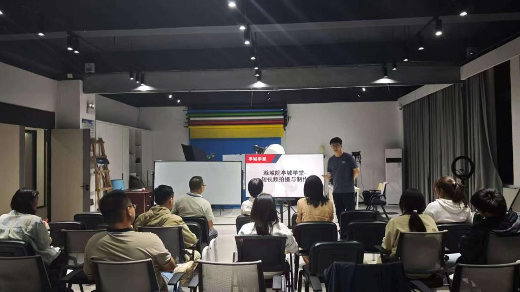 短视频拍摄制作班则走进润智楼406摄影实训室,蔡心宇老师从设备选择、运镜技巧到剪辑软件操作,逐步拆解短视频创作流程,还结合当下热门账号案例分析内容逻辑,帮助学员打通“从拍摄到变现”的思路,激发创作热情。“平时下班总觉得时间浪费了,亭城学堂的课程刚好填补了空闲,不仅能学新技能,还能认识志同道合的朋友!”一位学员兴奋地分享道。