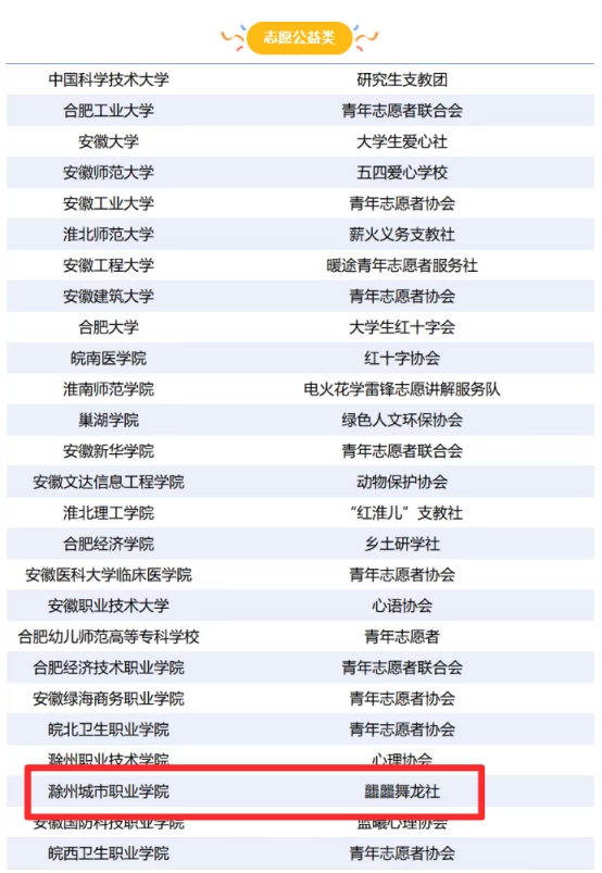 为深入贯彻落实习近平总书记关于青年工作的重要思想和习近平总书记考察安徽重要讲话精神,进一步激发高校学生社团活力,充分发挥学生社团育人功能,不断提升全省高校社团建设管理整体水平,团安徽省委、安徽学联开展2024-2025学年安徽省高校联通杯“活力社团”风采展示活动。自活动启动以来,我校高度重视、精心组织,通过“社团自主申报—校内初审评选—专项指导提升”的流程,遴选5个优秀社团代表学校参赛。经过线上风采展示、线下现场答辩等多轮激烈角逐,最终“清韵茶艺社”“艺创协会”“龘龘舞龙社”3个社团凭借深厚的文化底蕴、创新的活动形式与突出的育人成果,成功斩获省级荣誉。
