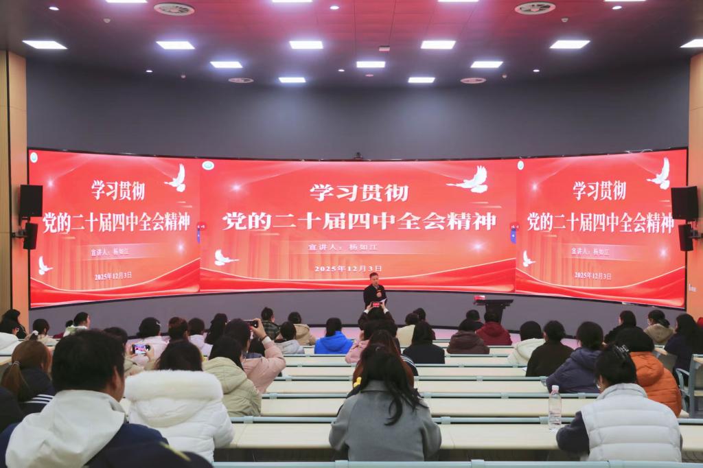 为深入学习贯彻党的二十届四中全会精神,推动全会精神在学校落地落实,12月3日下午,校党委委员、学生处处长杨如江走进生物医药学院,为师生作专题宣讲。生物医药学院全体党员、教职工代表、学生入党积极分子及机关第三党支部党员等150余人参加学习。